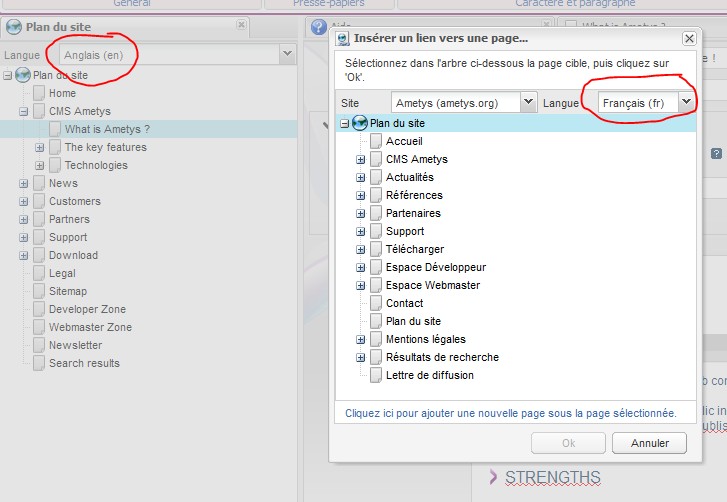 When a user edits content in the language n2 and wants to integrate an internal link to one page, it falls on the sitemap language No. 1.