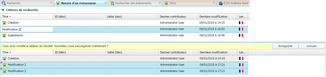 - I edited the first cell (title) on an entry ("Modification -> Modification 2")