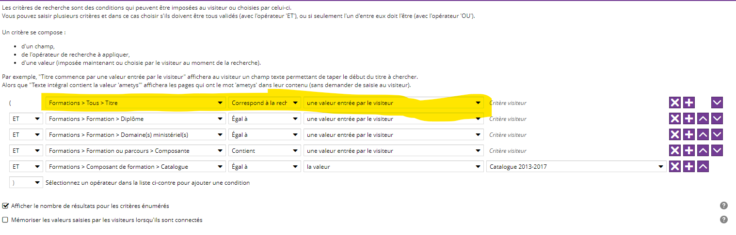 Il faudrait ajouter dans les critères de recherche la possibilité de rechercher sur le titre d'une formation ou d'un parcours, et pas uniquement sur le titre d'une formation.