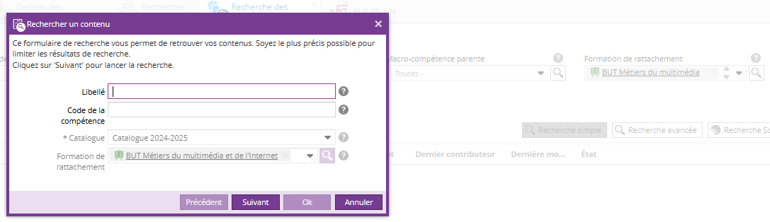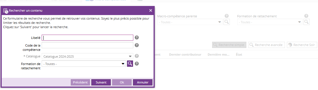 Dans les moteurs de recherche des micro-compétences, on a le critère de recherche "macro-compétence parente" mais ce critère n'est pas filtré par rapport à la formation sélectionnée