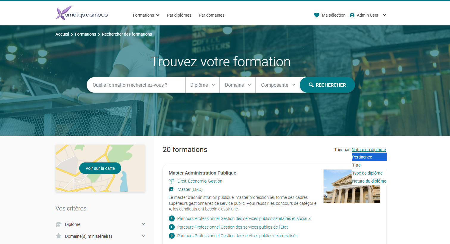 - Aller sur la demo : https://demo.ametys.org/odf/preview/www/fr/formations/rechercher-des-formations.html