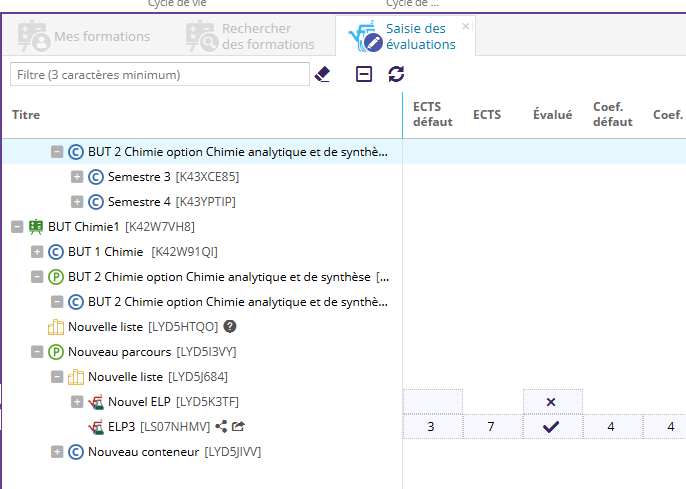 Actuellement depuis l'écran de saisie j'ouvre les évaluations de l'ELP depuis le chemin sur lequel j'ai les droits