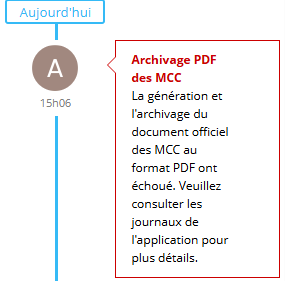 Date : 04/12 15:06:07.996 Utilisateur : admin#ametys-demo-users Thread : Thread[#7848,AmetysRuntimeScheduler_Worker-2,5,main] Niveau : ERROR Catégorie : org.ametys.plugins.odfpilotage.schedulable.MCCValidatedPDFSchedulable URI de la requête : /odf/_admin/plugins/admin/config/set Message : An error occurred generating the MCC validated PDF for container with id 'container://29241a75-cf30-4a00-9841-3946282c27d8' Emplacement : org.ametys.plugins.odfpilotage.schedulable.MCCValidatedPDFSchedulable._doExecute(MCCValidatedPDFSchedulable.java:128) Pile d'appels : org.apache.excalibur.source.SourceException: Exception during processing of cocoon://_plugins/odf-pilotage/final/container-rules.pdf?programItem=container://29241a75-cf30-4a00-9841-3946282c27d8&reportId=org.ametys.plugins.odfpilotage.report.MCCReport&isDefinitive=true at org.apache.cocoon.components.source.impl.SitemapSource#getInputStream:277 at org.ametys.plugins.odfpilotage.schedulable.MCCValidatedPDFSchedulable#_getPDFAsBinary:183 at org.ametys.plugins.odfpilotage.schedulable.MCCValidatedPDFSchedulable#_doExecute:120 at org.ametys.cms.schedule.AbstractSendingMailSchedulable#execute:86 at org.ametys.core.schedule.AmetysJob#execute:157 at org.quartz.core.JobRunShell#run:202 at org.quartz.simpl.SimpleThreadPool$WorkerThread#run:573 Caused by: org.apache.cocoon.ProcessingException: Failed to process pipeline at <map:serialize type="fo2pdf"> - resource://org/ametys/plugins/odf-pilotage/sitemap.xmap:186:59 at <map:transform type="i18n"> - resource://org/ametys/plugins/odf-pilotage/sitemap.xmap:176:48 at <map:transform type="xslt"> - resource://org/ametys/plugins/odf-pilotage/sitemap.xmap:173:144 at <map:transform type="i18n"> - resource://org/ametys/plugins/odf-pilotage/sitemap.xmap:169:48 at org.apache.cocoon.ProcessingException#throwLocated:145 at org.apache.cocoon.components.pipeline.AbstractProcessingPipeline#handleException:955 at org.apache.cocoon.components.pipeline.AbstractProcessingPipeline#processXMLPipeline:585 at org.apache.cocoon.components.pipeline.impl.AbstractCachingProcessingPipeline#processXMLPipeline:301 at org.apache.cocoon.components.pipeline.AbstractProcessingPipeline#process:483 at org.apache.cocoon.components.source.impl.SitemapSource#getInputStream:267 ... 6 more Caused by: org.xml.sax.SAXException: Could not get sitemap source cocoon://_plugins/odf-pilotage/pilotage/report.pdf?mode=inner java.lang.NullPointerException: Cannot invoke "String.equals(Object)" because the return value of "java.util.Map.get(Object)" is null at org.apache.cocoon.components.source.impl.SitemapSource#init:380 at org.apache.cocoon.components.source.impl.SitemapSource#<init>:215 at org.apache.cocoon.components.source.impl.SitemapSourceFactory#getSource:68 at org.apache.excalibur.source.impl.SourceResolverImpl#resolveURI:208 at org.apache.cocoon.environment.AbstractEnvironment#resolveURI:555 at org.apache.cocoon.environment.AbstractEnvironment#resolveURI:542 at org.apache.cocoon.environment.wrapper.MutableEnvironmentFacade#resolveURI:299 at org.apache.cocoon.sitemap.ContentAggregator#setup:290 at org.apache.cocoon.components.pipeline.AbstractProcessingPipeline#setupPipeline:387 at org.apache.cocoon.components.pipeline.impl.AbstractCachingProcessingPipeline#setupPipeline:738 at org.apache.cocoon.components.pipeline.AbstractProcessingPipeline#preparePipeline:503 at org.apache.cocoon.components.pipeline.AbstractProcessingPipeline#prepareInternal:517 at org.apache.cocoon.components.source.impl.SitemapSource#init:343 at org.apache.cocoon.components.source.impl.SitemapSource#<init>:215 at org.apache.cocoon.components.source.impl.SitemapSourceFactory#getSource:68 at org.apache.excalibur.source.impl.SourceResolverImpl#resolveURI:208 at org.apache.excalibur.source.impl.SourceResolverImpl#resolveURI:152 at org.ametys.plugins.odfpilotage.schedulable.MCCValidatedPDFSchedulable#_doExecute:118 ... 4 more Caused by: java.lang.NullPointerException: Cannot invoke "String.equals(Object)" because the return value of "java.util.Map.get(Object)" is null at org.ametys.plugins.odfpilotage.report.impl.MCCReport#getType:99 at org.ametys.plugins.odfpilotage.report.AbstractPilotageReport#getType:178 at org.ametys.plugins.odfpilotage.report.AbstractPilotageReport#getReportFileName:273 at org.ametys.plugins.odfpilotage.report.pipeline.SetReportParametersAndHeaderAction#act:99 at org.apache.cocoon.components.treeprocessor.sitemap.ActTypeNode#invoke:125 at org.apache.cocoon.components.treeprocessor.AbstractParentProcessingNode#invokeNodes:47 at org.apache.cocoon.components.treeprocessor.sitemap.MatchNode#invoke:108 at org.apache.cocoon.components.treeprocessor.AbstractParentProcessingNode#invokeNodes:69 at org.apache.cocoon.components.treeprocessor.sitemap.PipelineNode#invoke:143 at org.apache.cocoon.components.treeprocessor.AbstractParentProcessingNode#invokeNodes:69 at org.apache.cocoon.components.treeprocessor.sitemap.PipelinesNode#invoke:93 at org.apache.cocoon.components.treeprocessor.ConcreteTreeProcessor#process:236 at org.apache.cocoon.components.treeprocessor.ConcreteTreeProcessor#buildPipeline:194 at org.apache.cocoon.components.source.impl.SitemapSource#init:333 ... 21 more