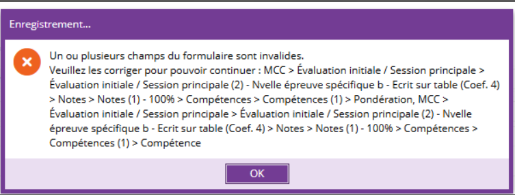 - Set in bold last field ? (Pondération and Compétence in this example)