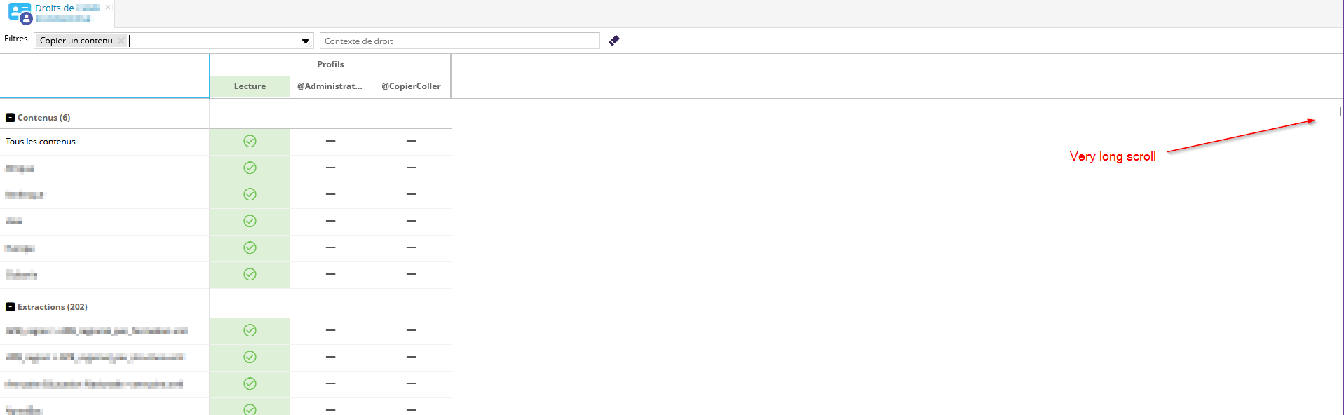 [Show rights tool] Filter on a right is cluttered by READER profile