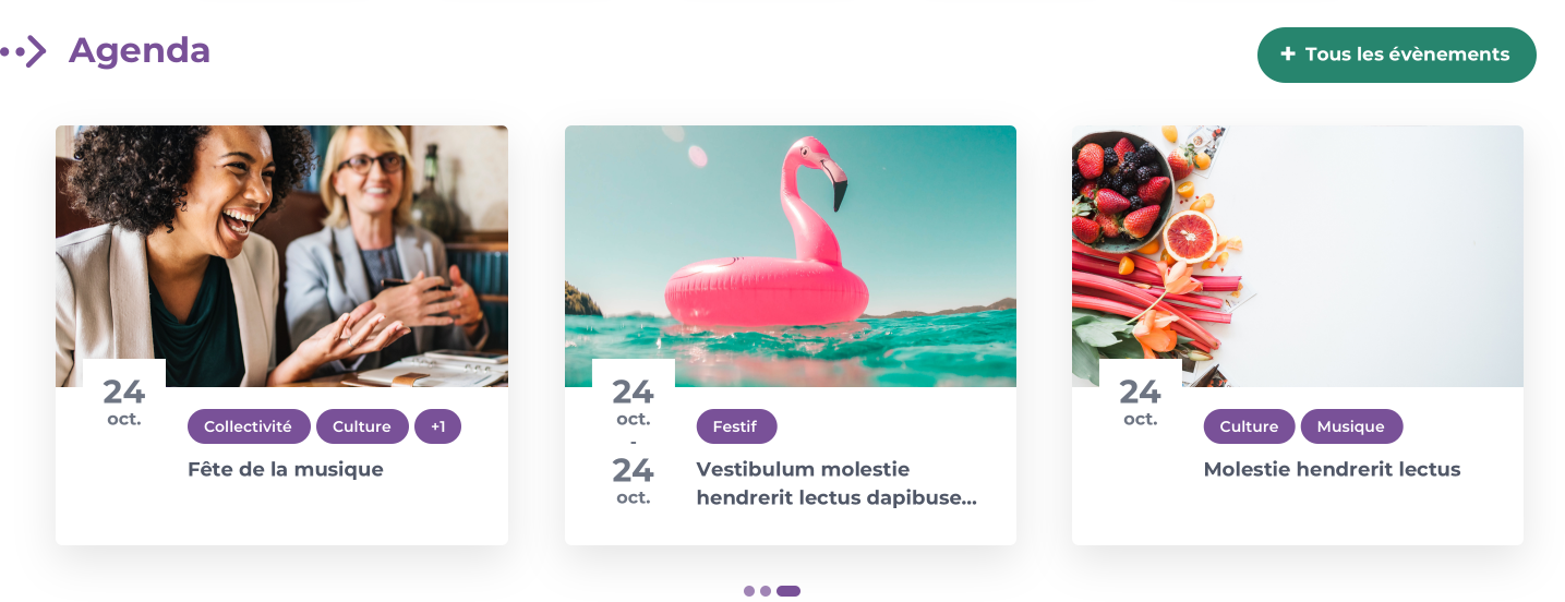 3 events per page are displayed.