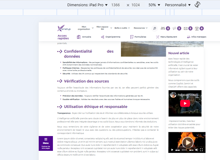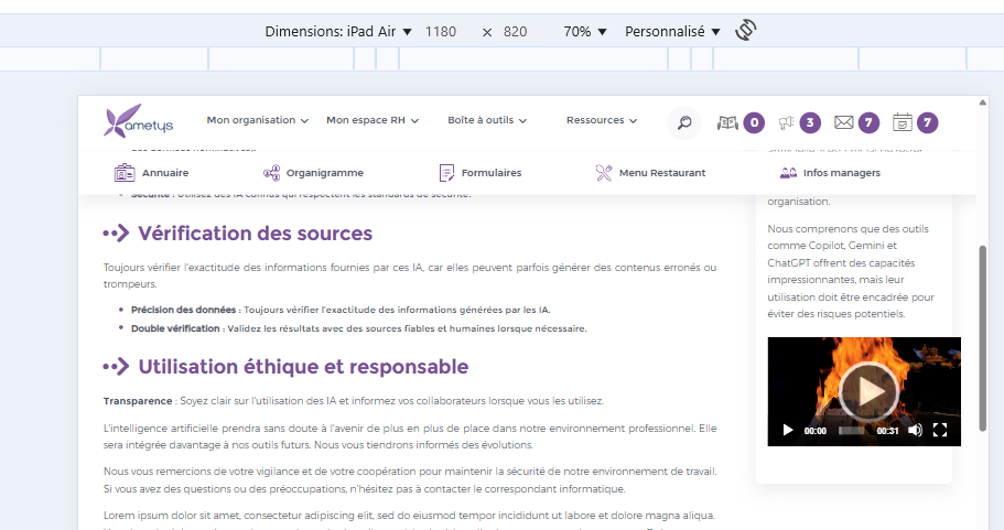 On internal pages, in the right-hand area, when you add a local video to content, it extends beyond the block and is not resized.