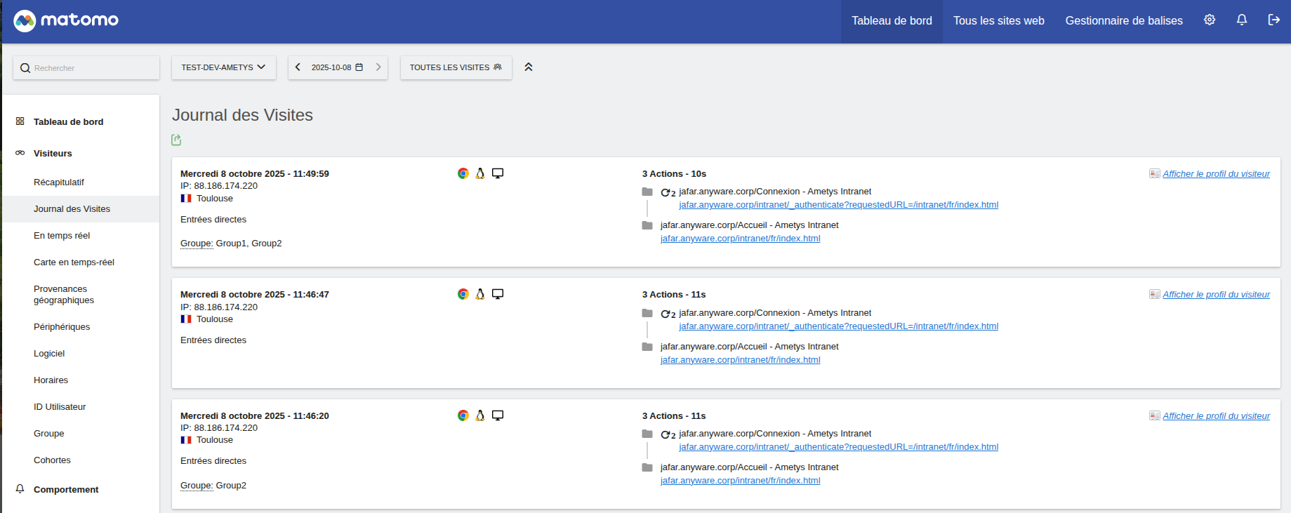 Add customized group dimension for Matomo tracking