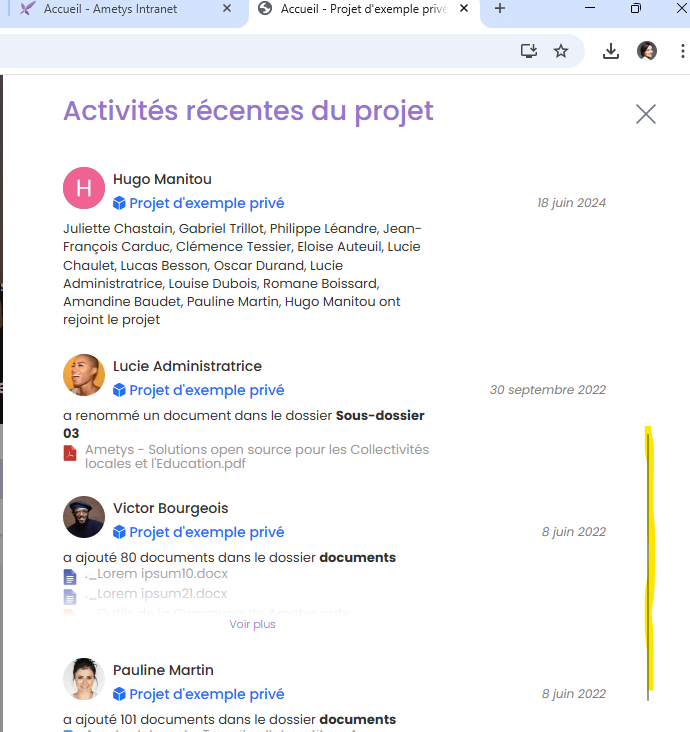In both example, the scroll bar has gone all the way up, but is not at the very top.