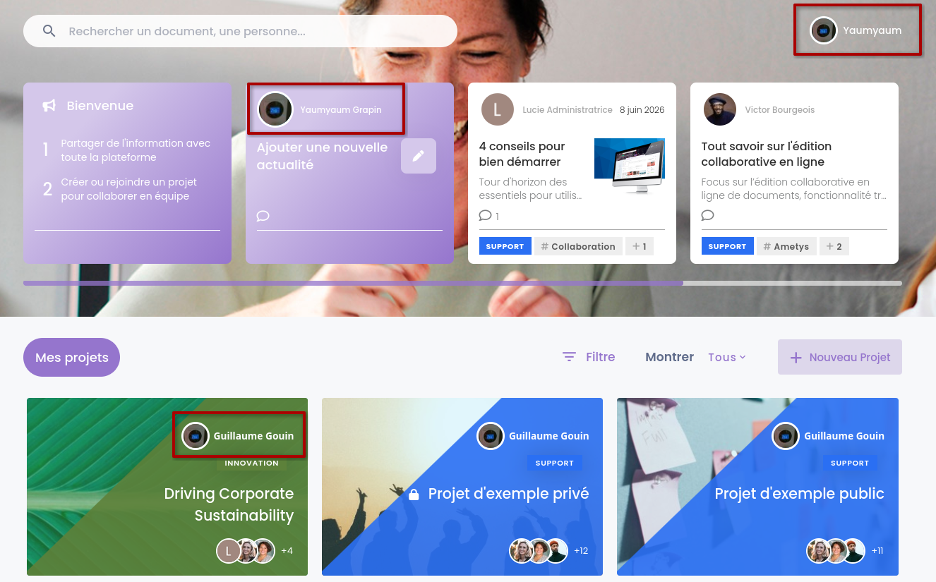 I have a user whose firstname is "YaumYaum" and name is "Grapin" This user has an associated user content with title "Guillaume Gouin", firstname "Guillaume" and name "Gouin"